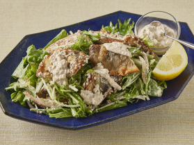 真あじの竜田揚げと豆腐タルタルのサラダ仕立て